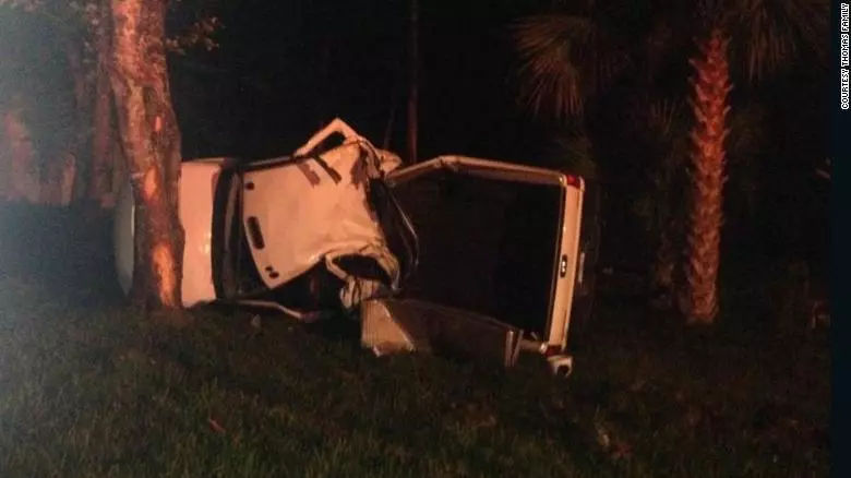 2014年7月19日,出国看病服务机构了解到Thomas开的卡车在某路口拐弯处翻了四圈,撞到一棵树上,停了下来。当时,她的身体一动也不动,从残破的残骸中半挂下来,脸色发青。