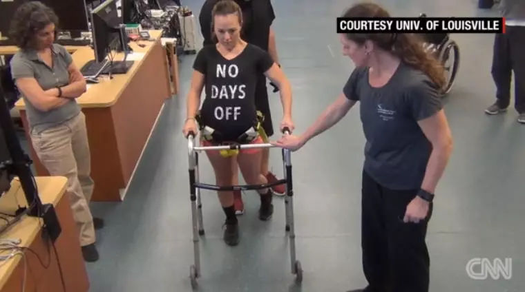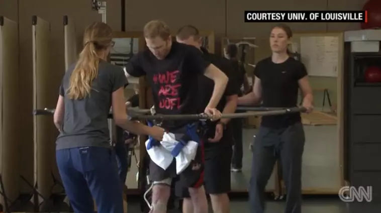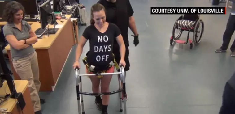 和Thomas一起在路易斯维尔大学肯塔基脊髓损伤研究中心接受治疗的还有另外三名瘫痪患者。最终这四人都能独立站立,有两个人能够在地面上行走。