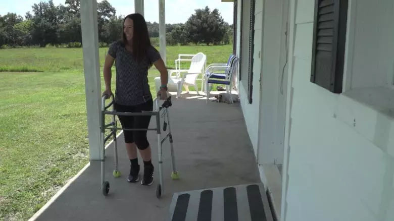 在弗罗里达湛蓝的天空下,手扶着助行器的Kelly Thomas,面带微笑,驻足欣赏着这世界。