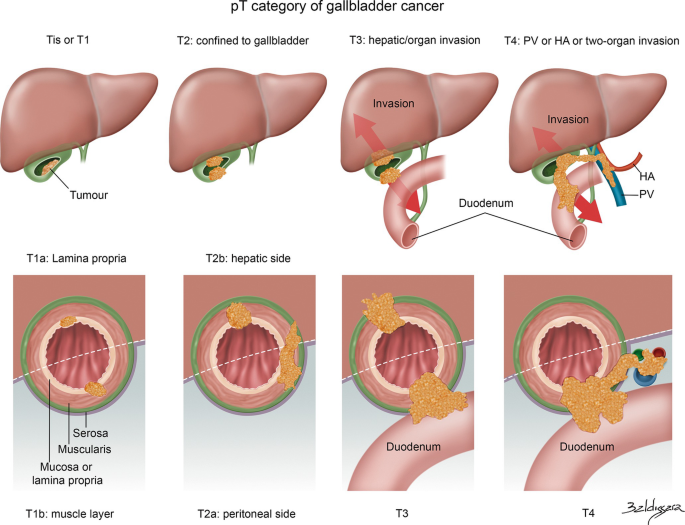 从分期图可以看到,当肿瘤仍局限于胆囊壁浅层时,局部切除后的长期控制机会相对较高;而一旦侵犯肝脏或胆管周围结构,就意味着不仅需要考虑局部切除范围,更要同步判断是否已经存在隐匿转移。