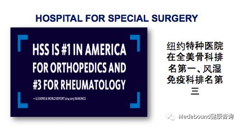 美国纽约特种外科医院,是全美排名第一的骨科医院,是美国历史最悠久的骨科外科医院,被公认为世界骨骼医学界的领袖。该医院为众多的专业明星运动员提供着治疗保健,例如NBA篮球“纽约尼克斯队”、棒球“纽约巨人队”、美式橄榄球“纽约红牛队”、美国篮球队、美国排球队、美国游泳队、职业网球联盟等等的队员们,还是美国职业高尔夫协会的官方医院。中国田径及美国众多NBA明星都曾在该医院得到诊治。