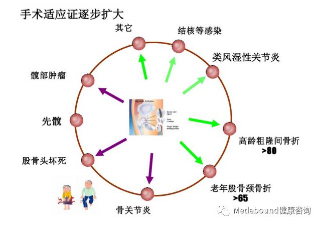 1994年,美国国立卫生研究院在针对人工全髋关节置换术的共识性声明中指出:“人工全髋关节置换术(THR)适用于几乎所有因患髋关节疾病而引起慢性疼痛和显著功能障碍的患者。”