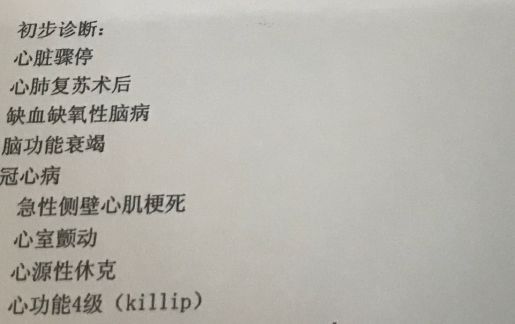 7点30分,患者家属发现患者晕倒在地,呼之不应。面部及口唇紫绀,无肢体抽搐、大小便失禁,家属紧急行心肺复苏处理,患者紫绀有所缓解,但仍神志不清。后经过一系列心肺复苏抢救、球囊辅助通气,心电图检查提示心室停搏,瞳孔已散大。最后进行ECMO、LABP、CRRT、呼吸机、血管活性药物等器官支持治疗。