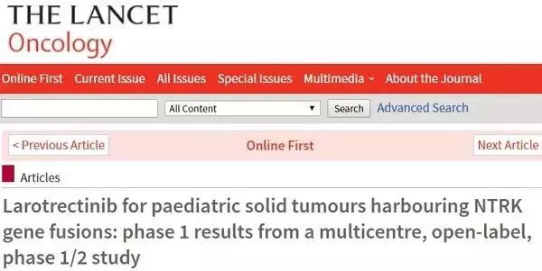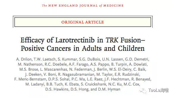 幸运的是她的肿瘤组织进行了基因检测后发现存在NTRK融合,于是,她参与了Vitrakvi的临床试验。