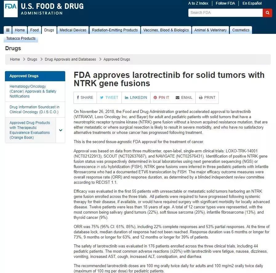 美国食品和药物管理局(FDA)给予Vitrakvi的批文