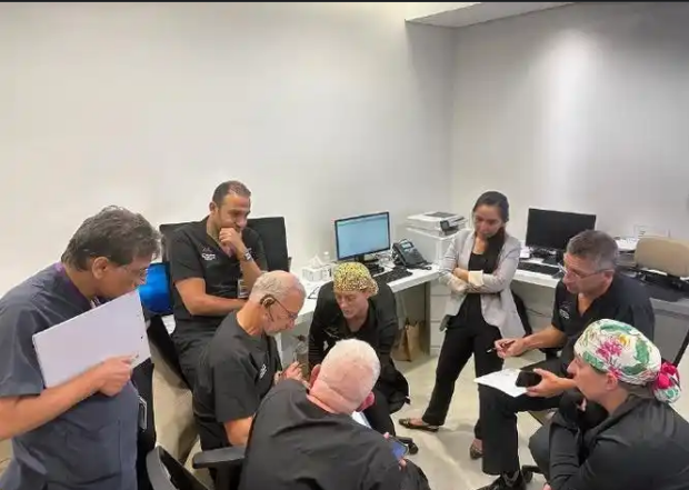 Paley医生团队成员在为患者做术前评估