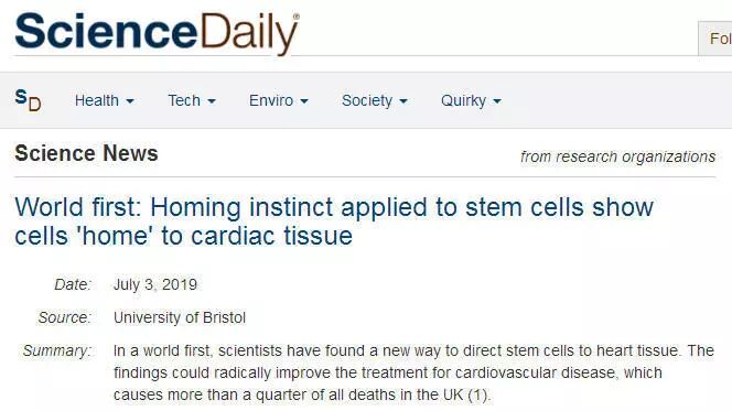 7月初,美国科学日报(sciencedaily)报道了一项突破性研究:这项研究被称为世界首次,科学家们首次在干细胞的表面涂上一层黏附素,这些黏附素就会将干细胞导航至心脏,修复和再生心脏细胞。有研究者称这一研究可能从根本上改善心血管疾病的治疗。
